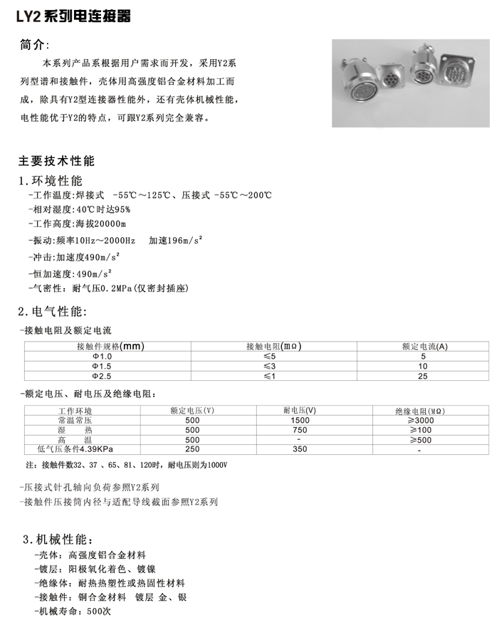 LY2系列圓形電連接器